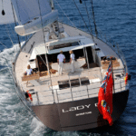 Lady B was delivered in 2010.  Her slim profile features a single-level superstructure, which keeps weight low and reduces wind age. She is constructed in aluminium and has a high aspect ratio rig with carbon mast and furling boom. Lady B is equipped with PBO standing rigging to enhance performance. Her compact lifting keel system generates a variable draught from a minimum depth of four metres to a maximum depth of six.