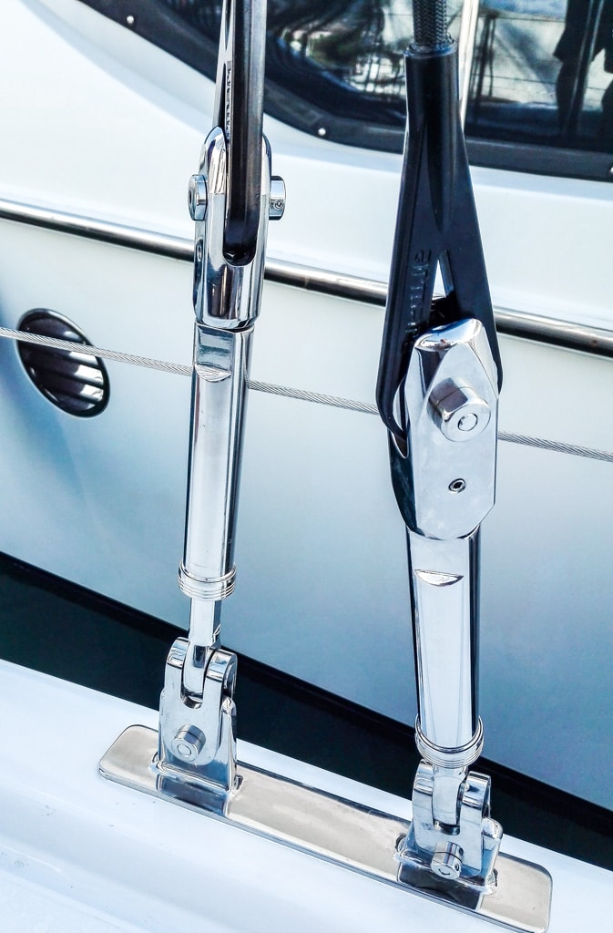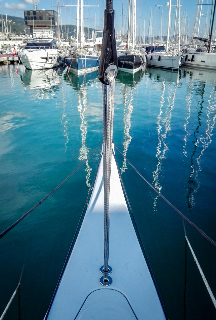 Armare Ropes has developed the solutions for the textile rigging, entirely made in PBO, and for the whole running rigging, together with the designer Marco Lostuzzi and the owner.Following the design and development of the project, Armare technicians have directly supervised the production of all the material and the installation on board. According to the expected performance of the boat, the running rigging is all characterized by the highest level of quality, with intensive and exclusive use of Dyneema®SK99 for the cores. the covers are in different mixes of technical fibers such as PBO®, Dyneema®, Technora, Cordura ® and Kevlar. For standing rigging, the chosen solution is a continuous rigging in PBO ,with special 17-4 PH steel fittings. The forestay and the two backstays are also produced in PBO, with a double winch serving a large square top main sail. The overall weight of the rigging, including all the necessary fittings to interface the textile cables to the mast, is only 16.8 Kg.