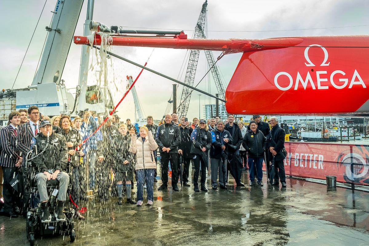 L’importante traguardo è stato celebrato nel quartier generale della squadra nel cuore del villaggio della Coppa America ad Auckland, insieme al team, alle loro famiglie, sponsor e fornitori. La barca è stata battezzata “Te Aihe” (Delfino) da Marcus Gerbich – membro della Fondazione MND – e benedetta da Ngati Whatua.