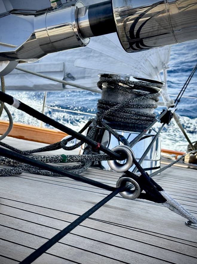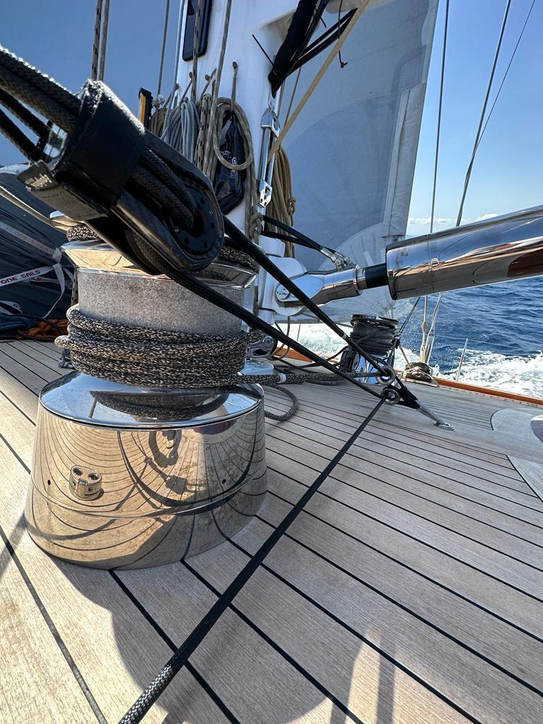 Adding to the two unidirectional anti-torsion cables in Dyneema® SK99 created last year for the Super Maxi, this year Armare Ropes riggers, with the valuable collaboration of Peter and Arnas from One Palma, introduced a new Jib Inhauler. We also supplied new racing sheets for jibs, gennakers and staysail from our Classic Line, specially designed for vintage boats in a Gold finish (hemp).