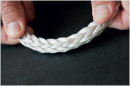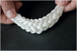 The braid after the HPS treatment: the fibers are oriented and the rope is more rigid and compact.