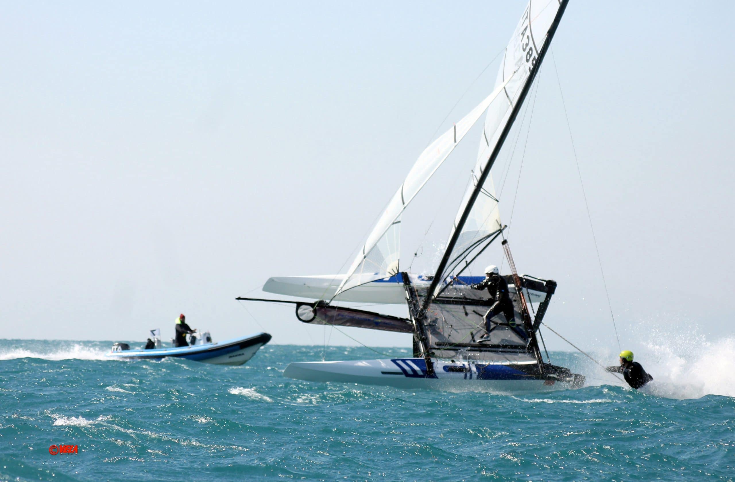 In classe Nacra 17 un meraviglioso terzo posto, conquistato dopo una scuffia rovinosa, per il team Ugolini-Giubilei (Compagnia della Vela Roma/CV Ventotene), sempre con la nostra attrezzatura.