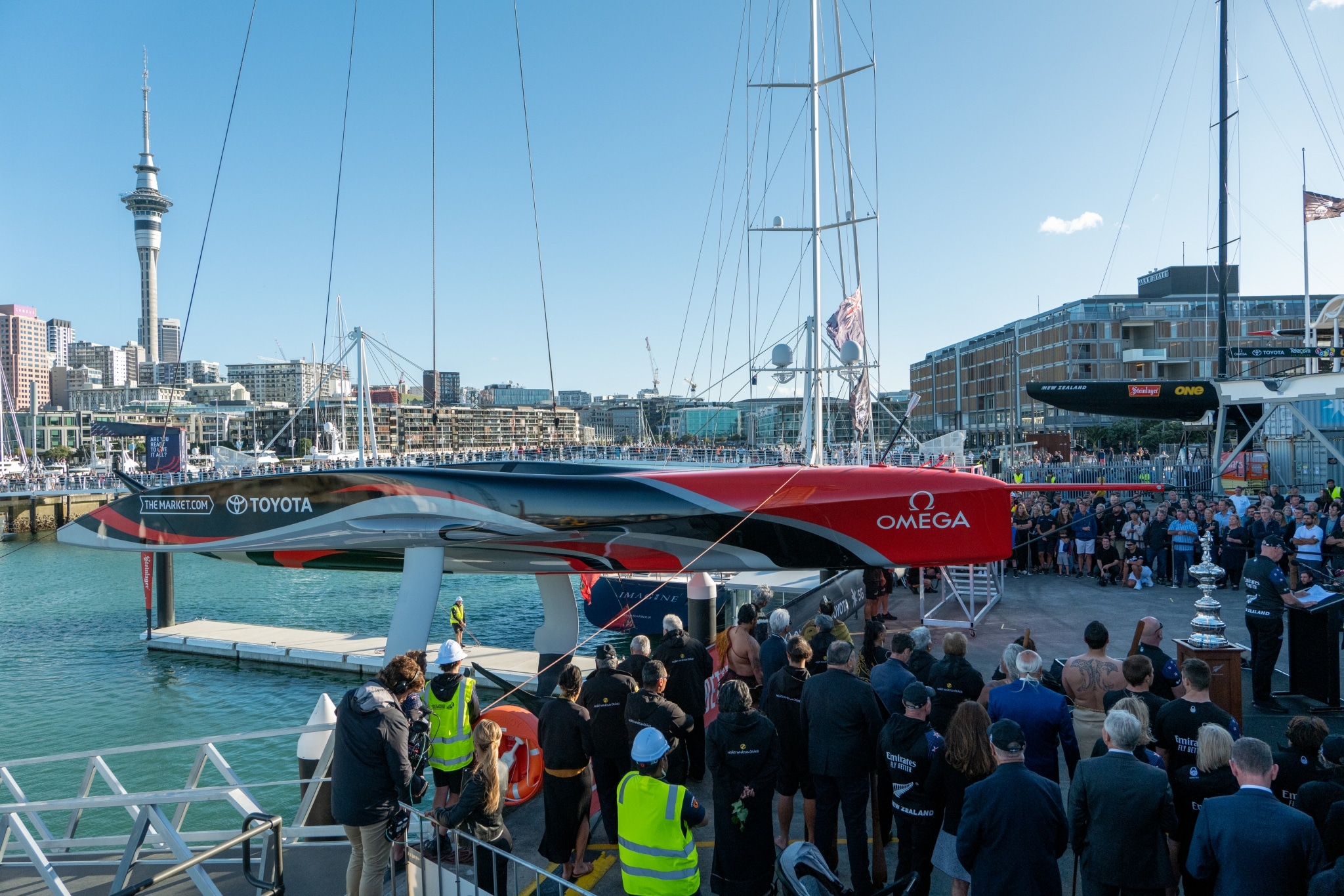 La barca è stata benedetta da Ngāti Whātua Ōrākei e orgogliosamente battezzata “Te Rehutai” da Lady Margaret Tindall in una cerimonia di fronte a quasi 900 tra amici, familiari, sponsor, fornitori e sostenitori della squadra.