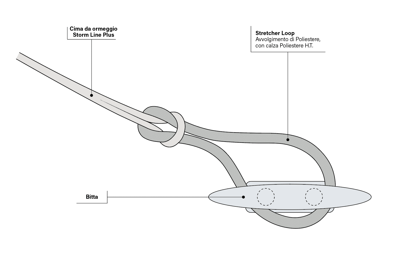 La gestione dell’ormeggio è un aspetto molto delicato in particolare in condizioni di forte vento, elevato moto ondoso e forte risacca; gli “stretcher loop” garantiscono un ormeggio sicuro e più confortevole per l’imbarcazione, l’equipaggio e gli ospiti. Il dimensionamento dell’accessorio deve essere basato sul carico di rottura della cima che lo accoglierà.